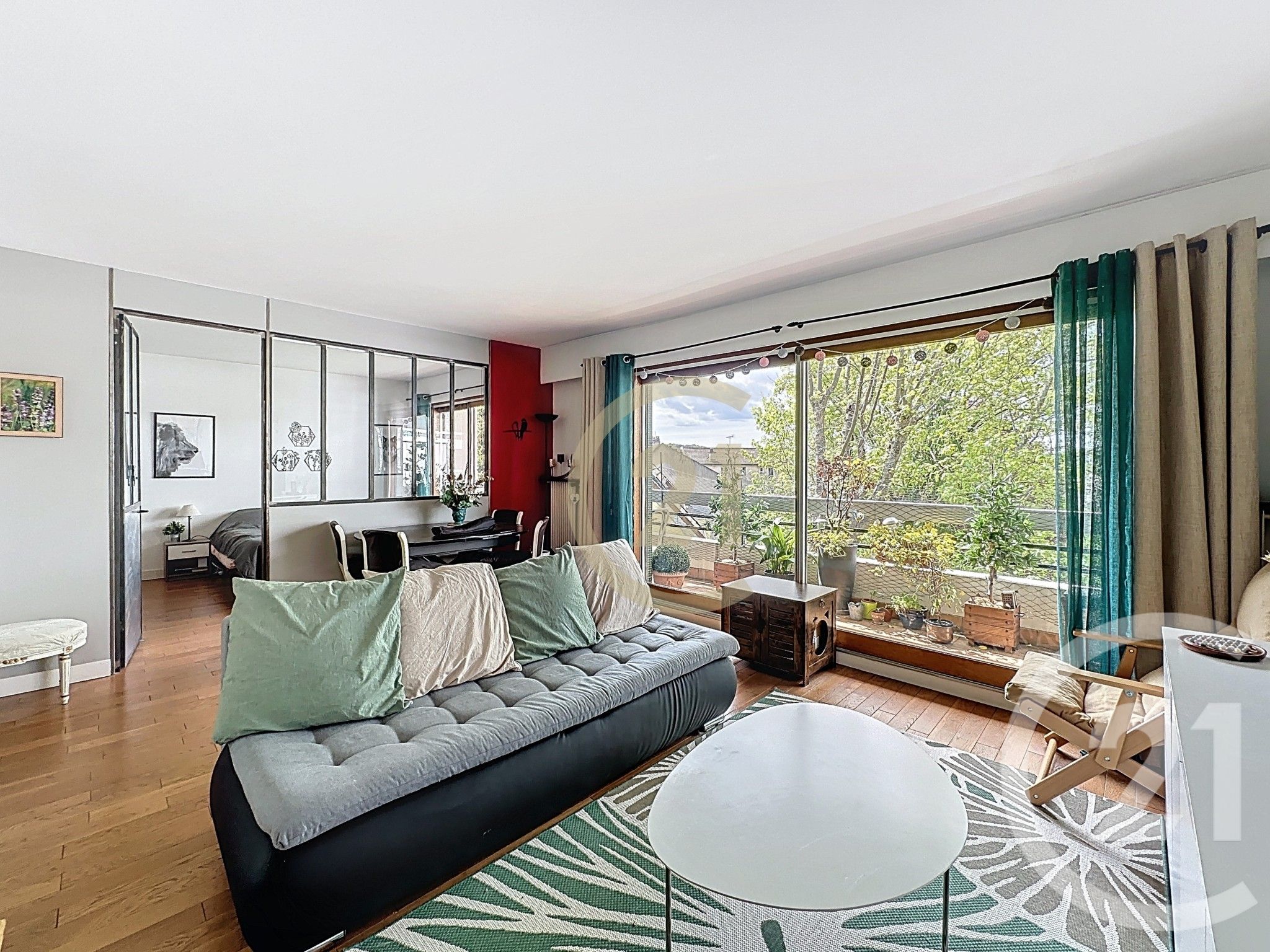 L'appartement est composé de deux chambres de bonnes dimensions, dont une suite principale qui se distingue par l'installation d'une verrière de type atelier. Cette dernière structure l'espace de façon moderne sans perdre en luminosité. Cette chambre dispose également d'un grand dressing sur mesure, optimisant la capacité de stockage. La cuisine, indépendante et fonctionnelle, est complétée par un cellier attenant, un atout technique indispensable pour l'organisation ménagère et le rangement des équipements.